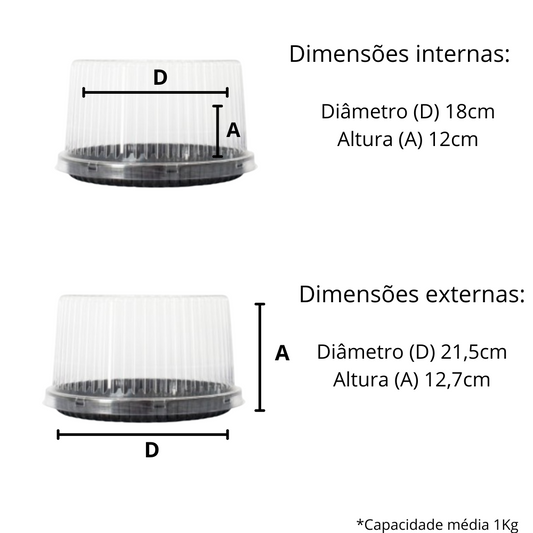 EMBALAGEM PET TORTA RET MINI PT - G 45CT - CX C/50