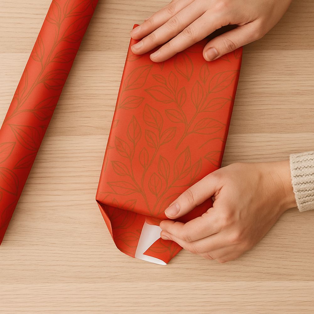 BOBINA DE PAPEL PRESENTE COM ESTAMPA DE FOLHAS E FLORES.