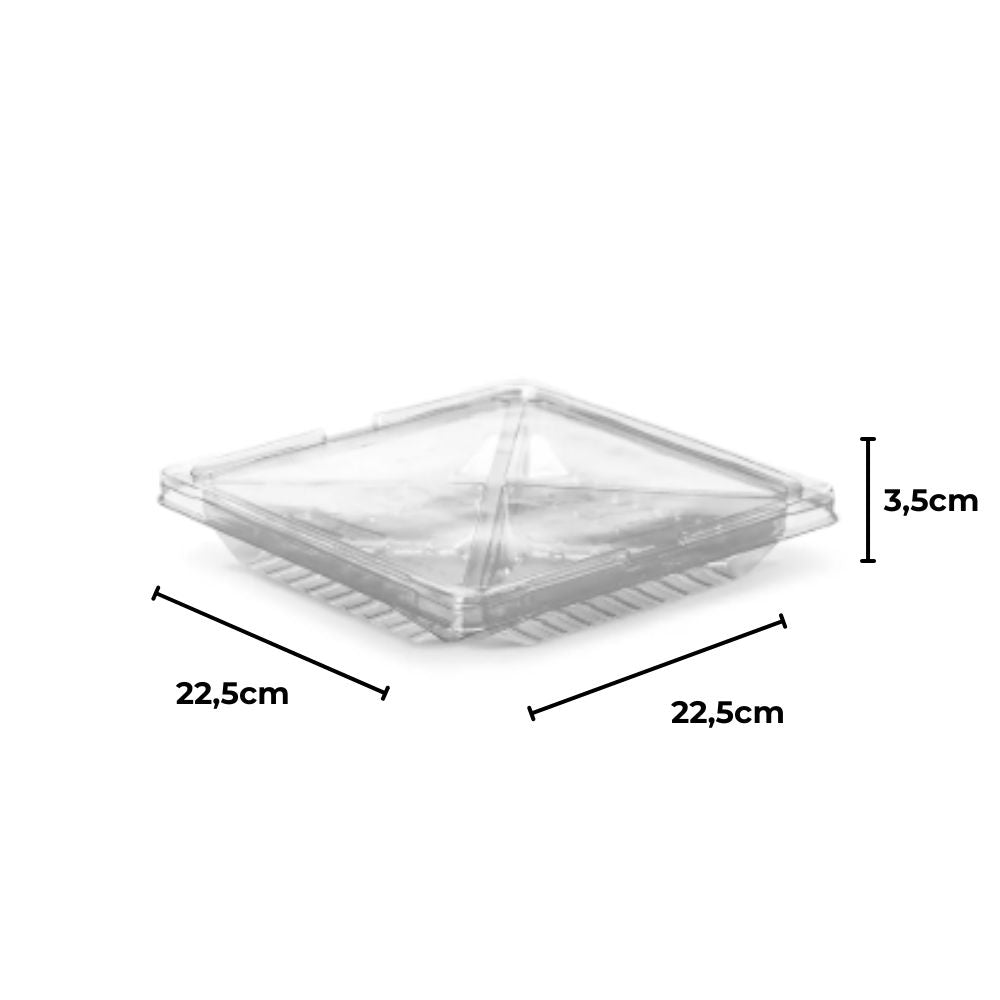 O PRODUTO SATISFAZ AS EXIGÊNCIAS DA RESOLUÇÃO 105/99 DA AGÊNCIA NACIONAL DE VIGILÂNCIA SANITÁRIA.MATERIAL PET - CRISTAL.DIMENSÕES:MEDIDAS EXTERNAS: COMPRIMENTO: 225MM - LARGURA: 225MM - ALTURA: 35MM.VALIDADE: INDETERMINADA.