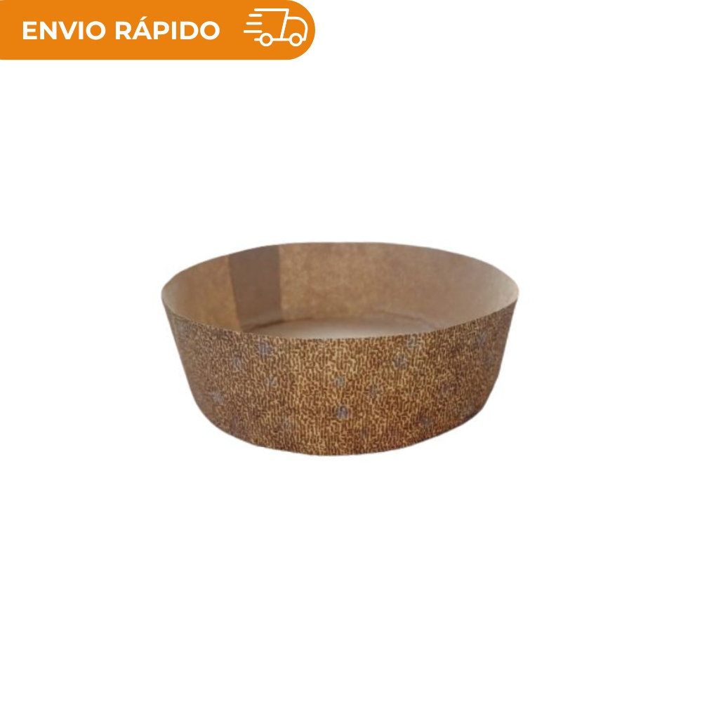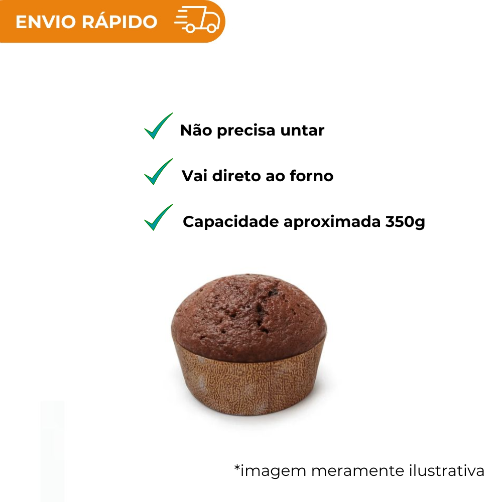 FORMA DE PAPEL EM MATERIAL KRAFT DECORADA.DIMENSÕES UNITÁRIAS: ALTURA 5CM - FUNDO 15,8CM - BOCA 16,5CM;CAPACIDADE: 350GVALIDADE: INETERMINADA PELO FABRICANTE.
