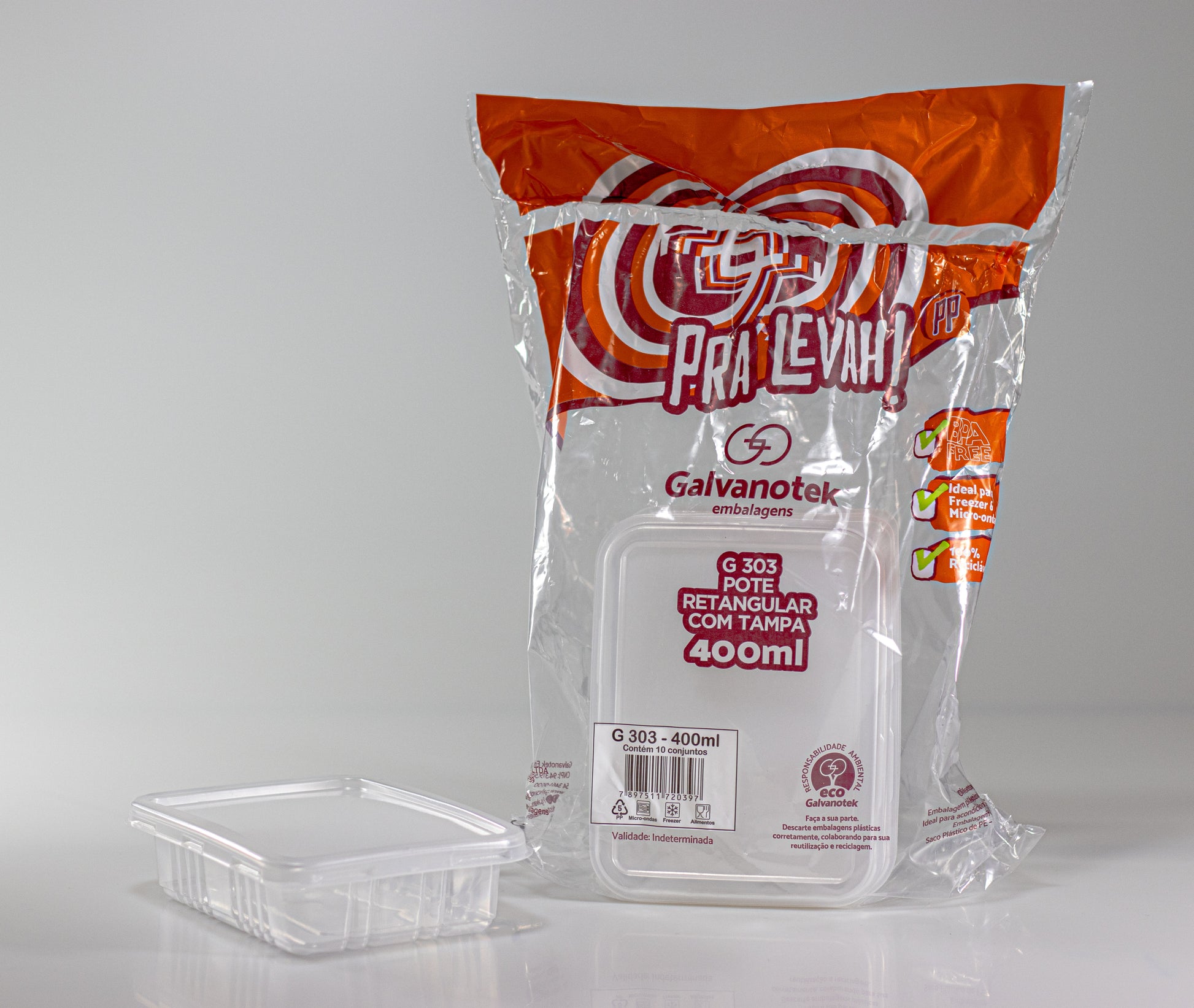 POTE 400ML PET RETANGULAR PP - G 303 SF - PC C/10